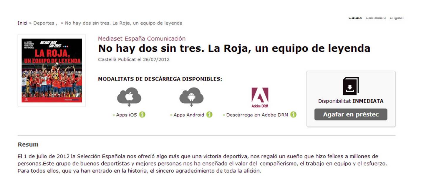 A lo que iba. Que mientras eso pase, no es fácil cultivar la afición a este tipo de literatura. Pero aún así, existen indicios de que vamos por el buen camino. ¿Un ejemplo? La reciente puesta en marcha en Catalunya de “E-biblio”, plataforma de préstamo de libros digitales de las bibliotecas públicas catalanas.