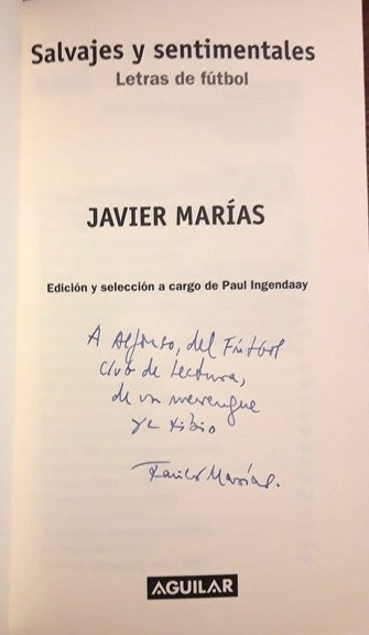 Se trata de “Letras de fútbol”, de Javier Marías, el responsable de esa maravillosa frase que tantas veces repito: “El fútbol es la recuperación semanal de la infancia”. Marías, madrileño y merengue, además de uno de los grandes de la literatura contemporánea, es un declarado aficionado al fútbol y autor de un gran número de artículos futboleros, una recopilación de los cuales es la que se puede encontrar en el volumen “Salvajes y sentimentales”, publicado el 2000 por Aguilar.