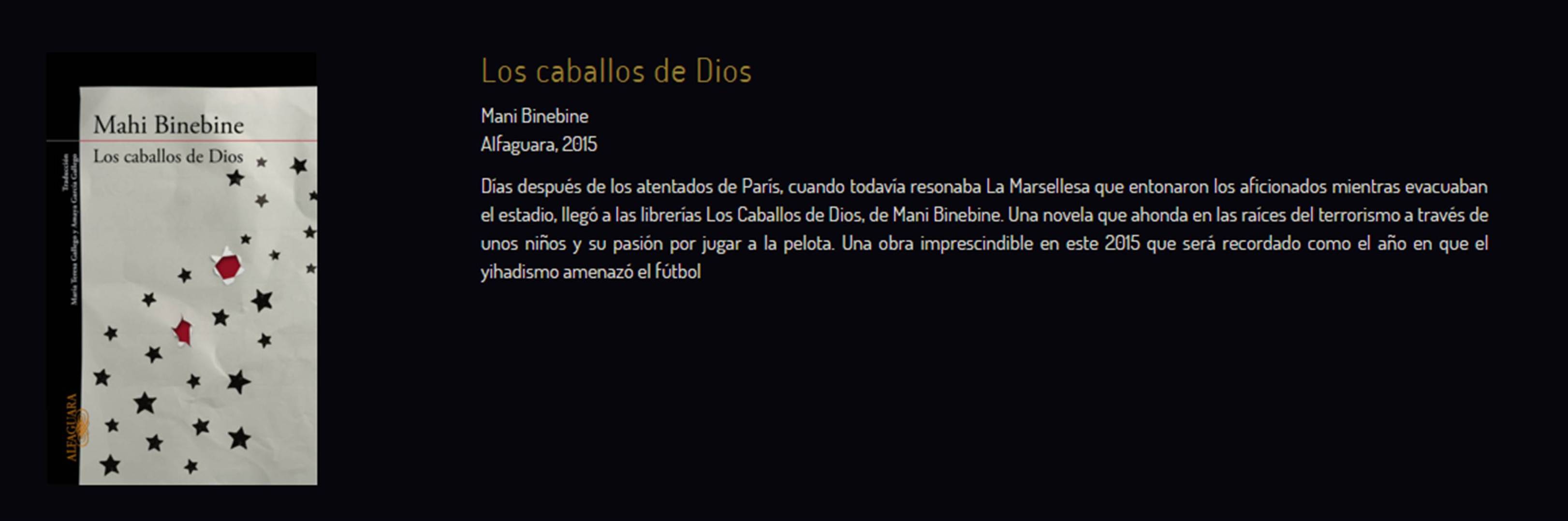 El caso es que me puse a ojearlo y a hojearlo, hasta que en el rápido pasar de páginas me pareció haber visto una palabra: “fútbol”. Busqué más detenidamente y descubrí que la palabra aparecía en el último capítulo del libro, cuyo título es “El sueño”.