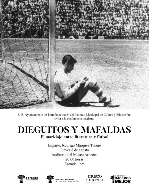 Y «Dieguitos y Mafaldas» es el magnífico título de la sesión que sobre fútbol y literatura tendrá lugar mañana jueves, día 8 de agosto, en el Auditorio del Museo Arocena de Torreón, Coahuila (México).