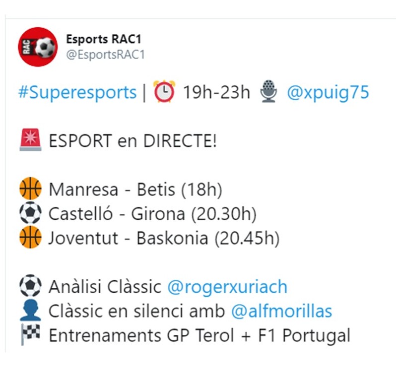 El sábado 24 de octubre tuve el gran honor de ser invitado a participar en el programa Superesports de RAC1, conducido por Xavi Puig. Fue justo al terminar el Barça-Madrid, un partido que tuvieron el acierto de calificar como el «Clásico del silencio«, ante la ausencia de público en las gradas.