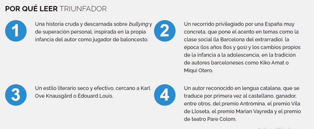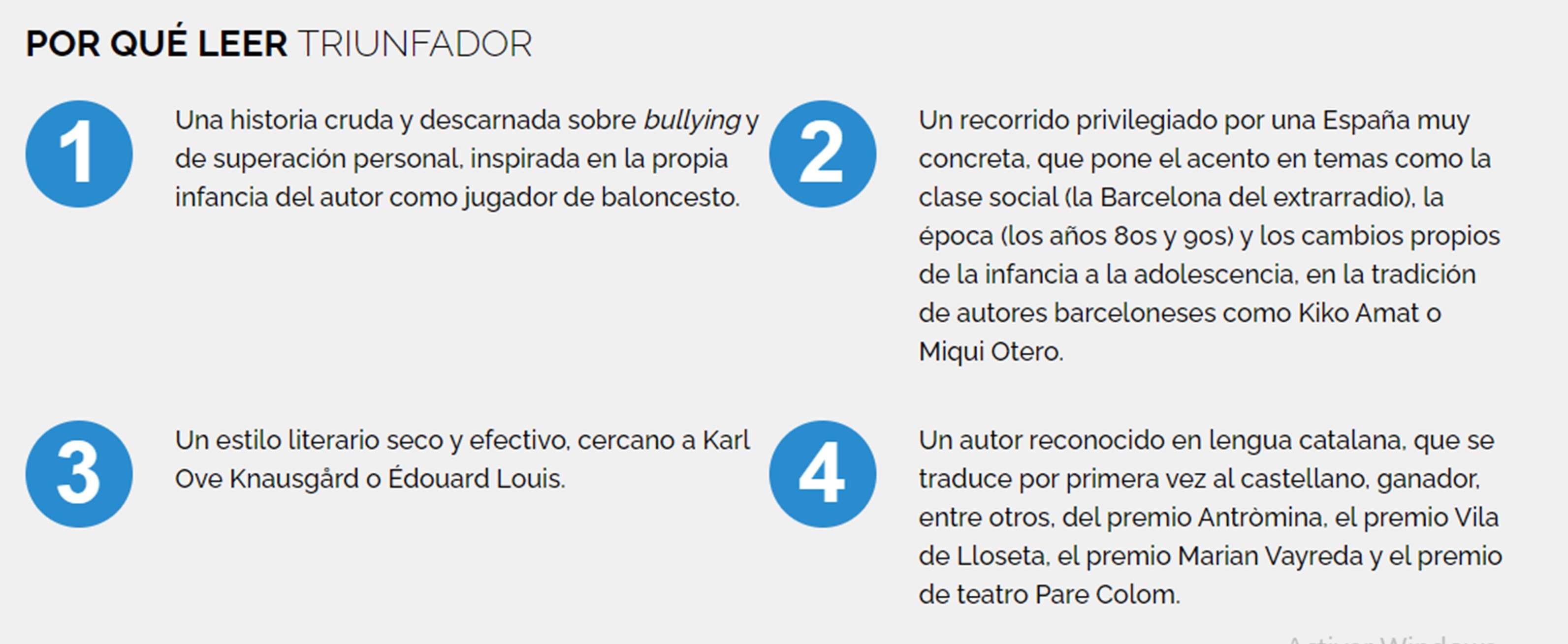 Sin embargo, en Triunfador, la reciente novela de Joan Jordi Miralles, publicada por la editorial Males Herbes en su edición en catalán y por Seix Barral en la española, lo que se describe se hace con una dureza y una crudeza que no suelen ser habituales. El autor, que pasó un tiempo durante los años 90 en La Masía del FC Barcelona (etapa en la que está ambientada la novela), se basa en su propia experiencia para explicar algunas de las terribles situaciones que llegó a vivir allí, más propias de aquellos tiempos de salvajes novatadas durante el servicio militar, que de una escuela formativa de deportistas.