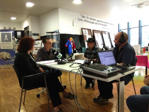 El día siguiente era lunes 23, Diada de Sant Jordi y Día del Libro. El responsable de “La Calaixera”, un programa de radio local del lugar en el que vivo, pidió poder hacer el especial desde la biblioteca pública Terra Baixa del Vendrell, en la que estoy empleado. Se hablaría, evidentemente, de libros, y tuve la ocasión de participar hablando, cómo no, de novedades literarias… futboleras. O sea: dos días, dos programas.