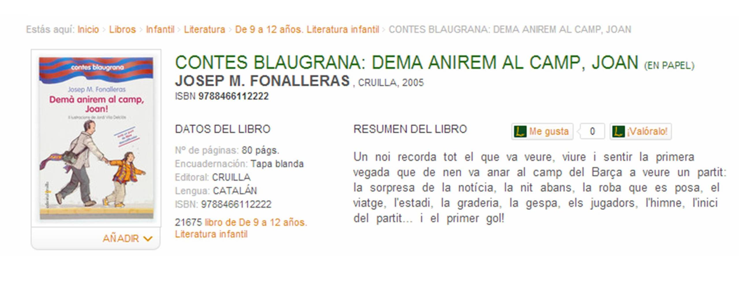 - «Demà anirem al camp, Joan!», de Josep Ma. Fonalleras. Editorial Cruïlla. Primer número de la sèrie de 6 que sota el títol «Contes blaugrana» es va publicar l’any 2005, en motiu de la celebració de l’Any del Llibre i la Lectura a Barcelona. Una sèrie adreçada als lectors més joves i que és una aproximació idònia al món de la lectura des de la perspectiva del Futbol Club Barcelona.
