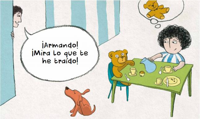 Algo así es lo que parece que encontraremos en «Armando«, una delicia de álbum escrito e ilustrado por Fernando Pérez Hernando, y publicado en el 2016 por la Editorial Takatuka. La portada no puede ser más clara: un niño llamado Armando, vestido con la camiseta de la selección argentina y sosteniendo un balón de fútbol.