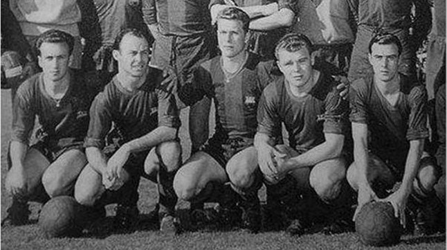 Esos “nombres” a los que se refiere es la alineación: Ramallets; Martín, Biosca, Seguer; Gonçalvo, Bosch; Basora, César, Kubala, Moreno y Manchón.