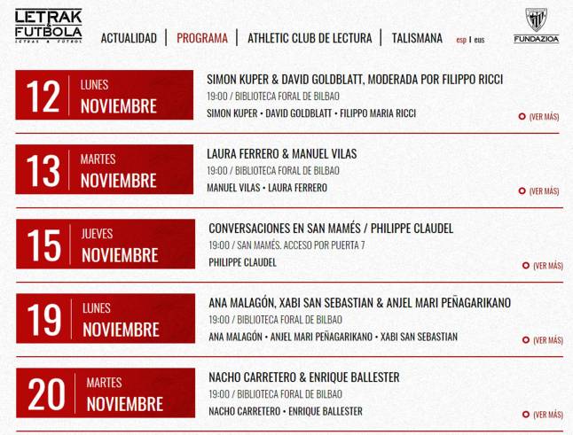 Uno de los acontecimientos más importantes del mundo del fútbol y la literatura es el encuentro «Letras y Fútbol» que cada año organiza la Fundación del Athletic de Bilbao.