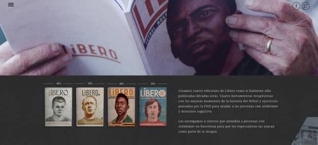 Fútbol vs Alzheimer es un proyecto que la revista Líbero puso en marcha en colaboración con la Fundació Salut i Envelliment, creado para apoyar esta línea de investigación y ayudar a todas las personas con esta enfermedad. Lo que hicieron fue enviar sus revistas al pasado para recuperar los recuerdos de los fans del fútbol.